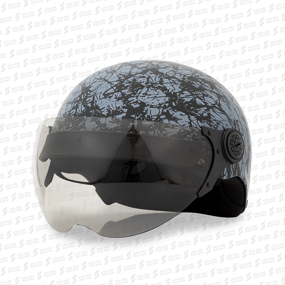 THIẾT KẾ THÔNG MINH - Phong cách thiết kế: mũ kiểu 3/4 kèm kính dài, mũ được thiết kế dáng tròn, đi kèm 2 miếng ốp má, giúp tăng thêm hiệu quả bao phủ, bảo
