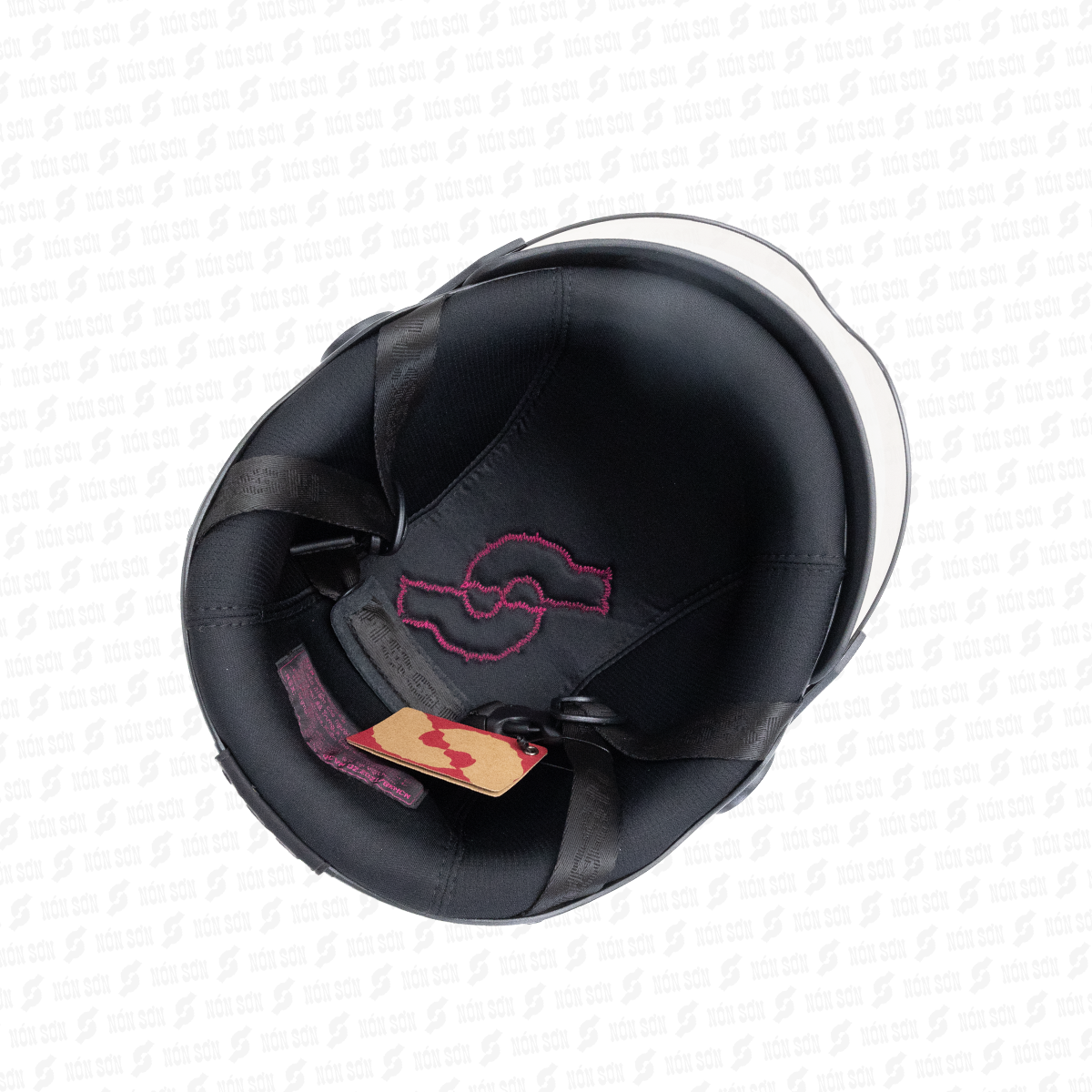 • Phần logo NÓN SƠN được gắn trên vỏ nón bảo hiểm Nón Sơn được làm từ da thật.