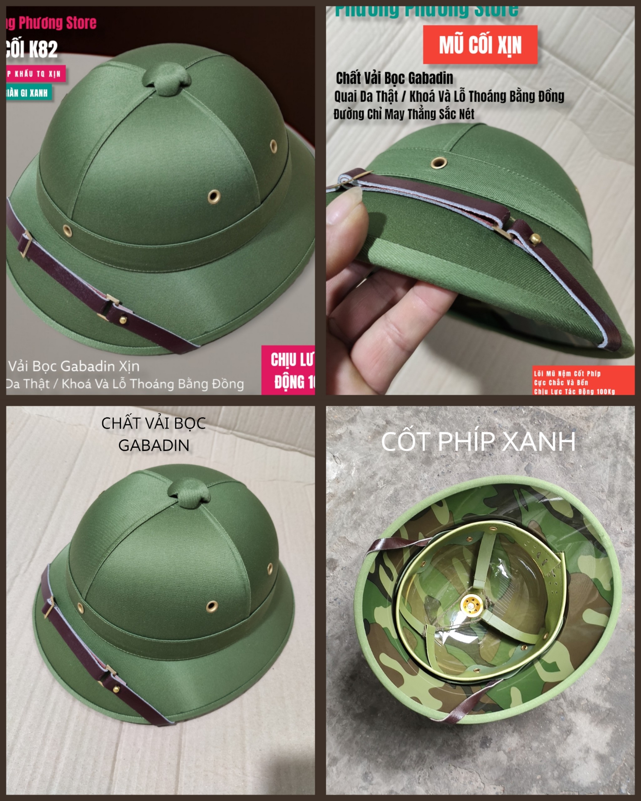 MŨ CỐI ARMY K82 XỊN MŨ CỐI VẢI BỌC GABADIN QUAI DA THẬT LÒNG CỐT PHÍP ĐÚC NGUYÊN KHỐI CAO CẤP SHOP PHƯƠNG PHƯƠNG STORE BÁN SẢN PHẨM MŨ CỐI XỊN HÀNG NHẬP KHẨU NHƯ