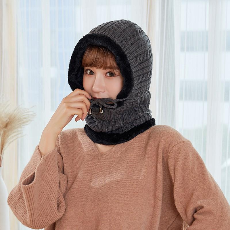 ✨Mũ len nữ trùm đầu liền khăn choàng cổ lót lông ấm áp thích hợp cả nam và nữ
