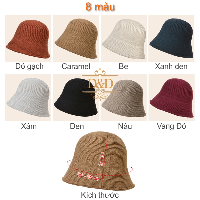 Mũ nón bucket, nón nồi, nón len nữ phong cách Nhật Hàn - Phong cách: Nhật Hàn thời trang, đơn giản nhưng ấn tượng, trẻ trung, cá tính. - Chất liệu: Polyester + acrylic +