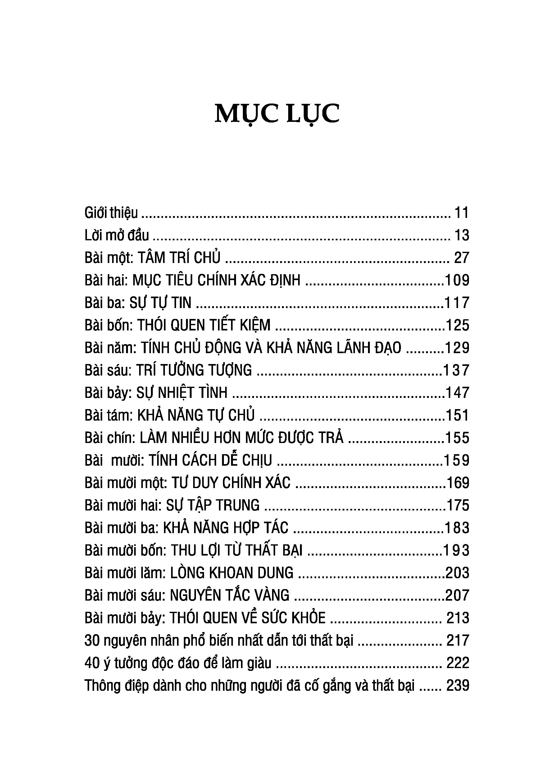 Có cả một kho báu tri thức được khai quật trong cuốn sách này. Napoleon Hill đưa ra một lộ trình ngắn gọn, chi tiết để đi lên nấc thang dẫn tới thành công, một bước tiến phụ thuộc vào việc tổ chức các quy trình tư duy của một người. Có lẽ đọc cuốn sách này, bạn sẽ tìm thấy một trong những thứ quan trọng để xoay chuyển cuộc đời mình sang hướng khác – hướng của một cuộc đời thành công, ví như: xác lập mục tiêu, bồi dưỡng sự tự tin, hình thành thói quen tiết kiệm, tạo dựng tính chủ động, tự chủ, phát huy khả năng tưởng tượng, giữ lửa nhiệt tình, giữ vững sự tập trung, xây dựng khả năng hợp tác, rút ra kinh nghiệm sau thất bại, khoan dung với mình và mọi ngườ