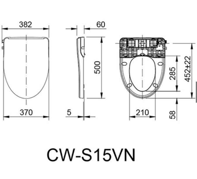 Thông số kỹ thuật: Tên sản phẩm: Nắp rửa cơ Mã sản phẩm: CW-S15VN Điều chỉnh nước: 2 tay vặn dùng cho rửa đại tiện và rửa phụ nữ Số lỗ phun: Đại tiện 3