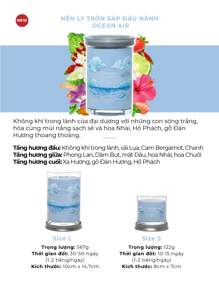 ✨Nến ly tròn sáp đậu nành Yankee Candle size L (567g) - Ocean Air