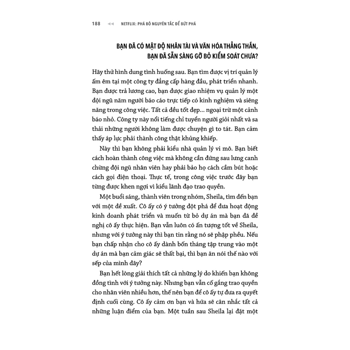 Cuốn sách khám phá văn hóa nội bộ khác lạ của Netflix – nơi không chỉ phá bỏ quy tắc, mà còn kiến tạo hệ sinh thái “tự do đi kèm trách nhiệm”. Reed Hastings – đồng sáng lập kiêm CEO – và Erin Meyer – chuyên gia văn hóa doanh nghiệp – phân tích cách Netflix liên tục tái phát minh mình: không chính sách nghỉ phép cố định, không quy định chi phí, nhưng luôn yêu cầu phản hồi trung thực và chất lượng làm việc đỉnh cao.