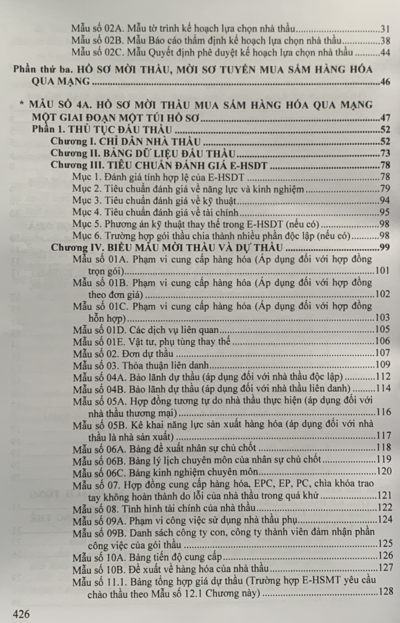 Nghiệp vụ đấu thầu mua sắm hàng hóa qua mạng (bao gồm cả trường hợp mua sắm tập trung) Hướng dẫn việc cung cấp, đăng tải thông tin về lựa chọn nhà thầu và mẫu hồ sơ đấu thầu trên hệ thống mạng đấu thầu quốc gia Tác giả: Tăng Bình (Hệ thống) NXB: Nhà Xuất Bản Hồng Đức Công ty phát hành: Dân Hiền Ngày phát hành: 3.2024 Số trang: 420 trang Khổ sách: 19x27 cm Giá bìa: 395.000. Ngày 15 tháng 02 năm 2024 Bộ Kế hoạch và Đầu tư đã ban hành Thông tư số 01/2024/TT-BKHĐT hướng dẫn việc cung cấp, đăng tải thông tin về lựa chọn nhà thầu và mẫu hồ sơ đấu thầu trên Hệ thống mạng đấu thầu quốc gia. Nhằm kịp thời phổ biến hướng dẫn các bên mời thầu, chào thầu và chủ đầu tư cập nhật các quy định pháp luật mới về đấu thầu, đấu thầu qua mạng và hệ thống mạng đấu thầu quốc gia mới, Nhà Xuất Bản Hồng Đức xuất bản cuốn sách: NGHIỆP VỤ ĐẤU THẦU MUA SẮM HÀNG HÓA QUA MẠNG (BAO GỒM CẢ TRƯỜNG HỢP MUA SẮM TẬP TRUNG) HƯỚNG DẪN VIỆC CUNG CẤP, ĐĂNG TẢI THÔNG TIN VỀ LỰA CHỌN NHÀ THẦU VÀ MẪU HỒ SƠ ĐẤU THẦU TRÊN HỆ THỐNG MẠNG ĐẤU THẦU QUỐC GIA Nội dung cuốn sách bao gồm những nội dung sau: Phần thứ nhất. MỘT SỐ QUY ĐỊNH VỀ VIỆC CUNG CẤP, ĐĂNG TẢI THÔNG TIN VỀ LỰA CHỌN NHÀ THẦU VÀ NỘI DUNG MẪU HỒ SƠ ĐẤU THẦU; Phần thứ hai. MẪU LẬP, THẨM ĐỊNH, PHÊ DUYỆT KẾ HOẠCH TỔNG THỂ, KẾ HOẠCH LỰA CHỌN NHÀ THẦU; Phần thứ ba. HỒ SƠ MỜI THẦU, MỜI SƠ TUYỂN MUA SẮM HÀNG HÓA QUA MẠNG; Phần thứ tƣ. BÁO CÁO ĐÁNH GIÁ HỒ SƠ DỰ THẦU QUA MẠNG CHO GÓI THẦU MUA SẮM HÀNG HÓA; Phần thứ năm. PHỤ LỤC. Trong quá trình hệ thống, mặc dù đã cố gắng nhưng vẫn không tránh khỏi các thiếu sót, rất mong bạn đọc góp ý để hoàn thiện hơn khi tái bản!