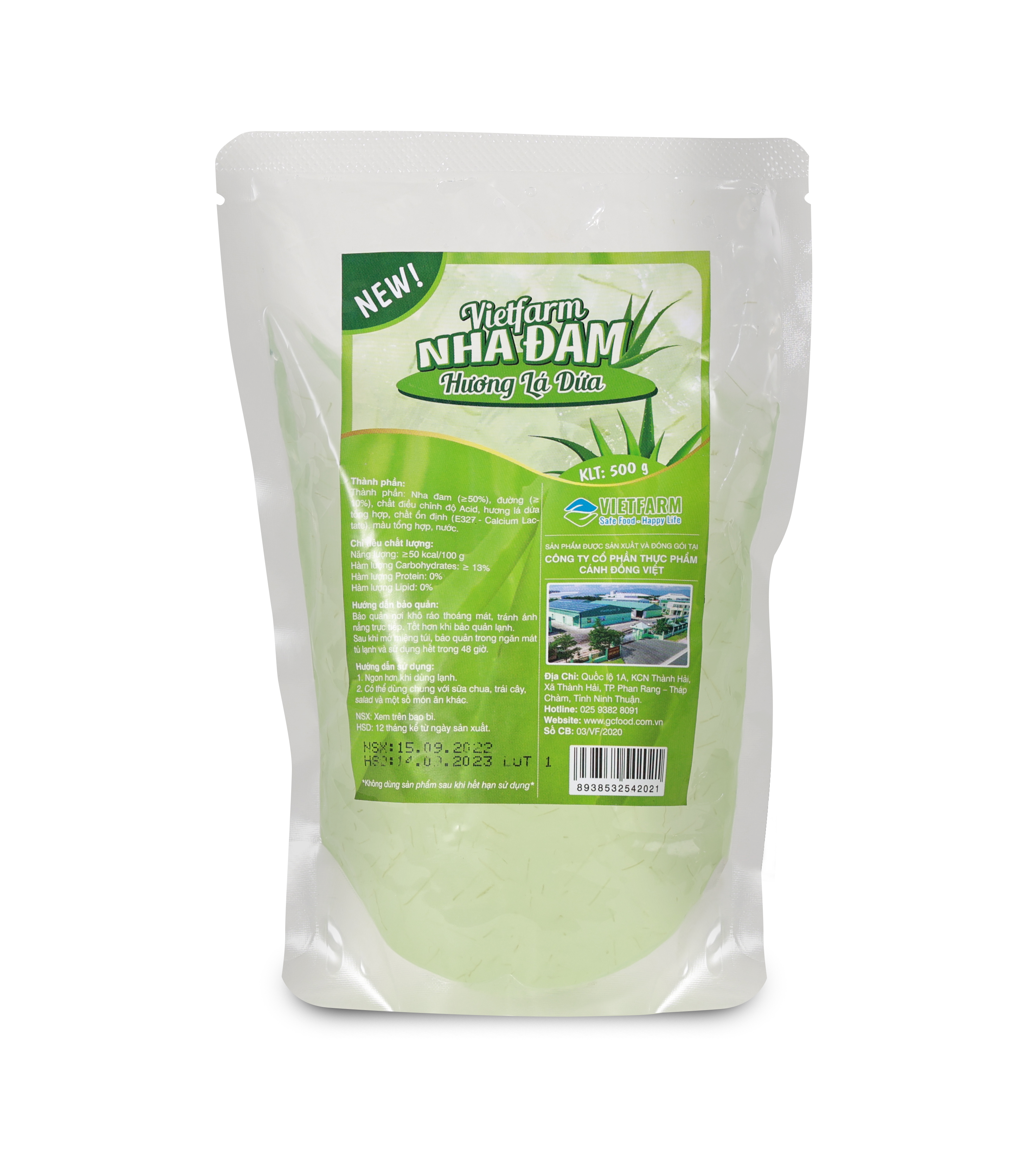 Thạch nha đam Vietfarm được sản xuất bởi Công ty CP Thực phẩm Cánh Đồng Việt, Cty sản xuất nha đam lớn nhất Việt Nam hiện nay. Quy trình sản xuất khép kín, đảm bảo
