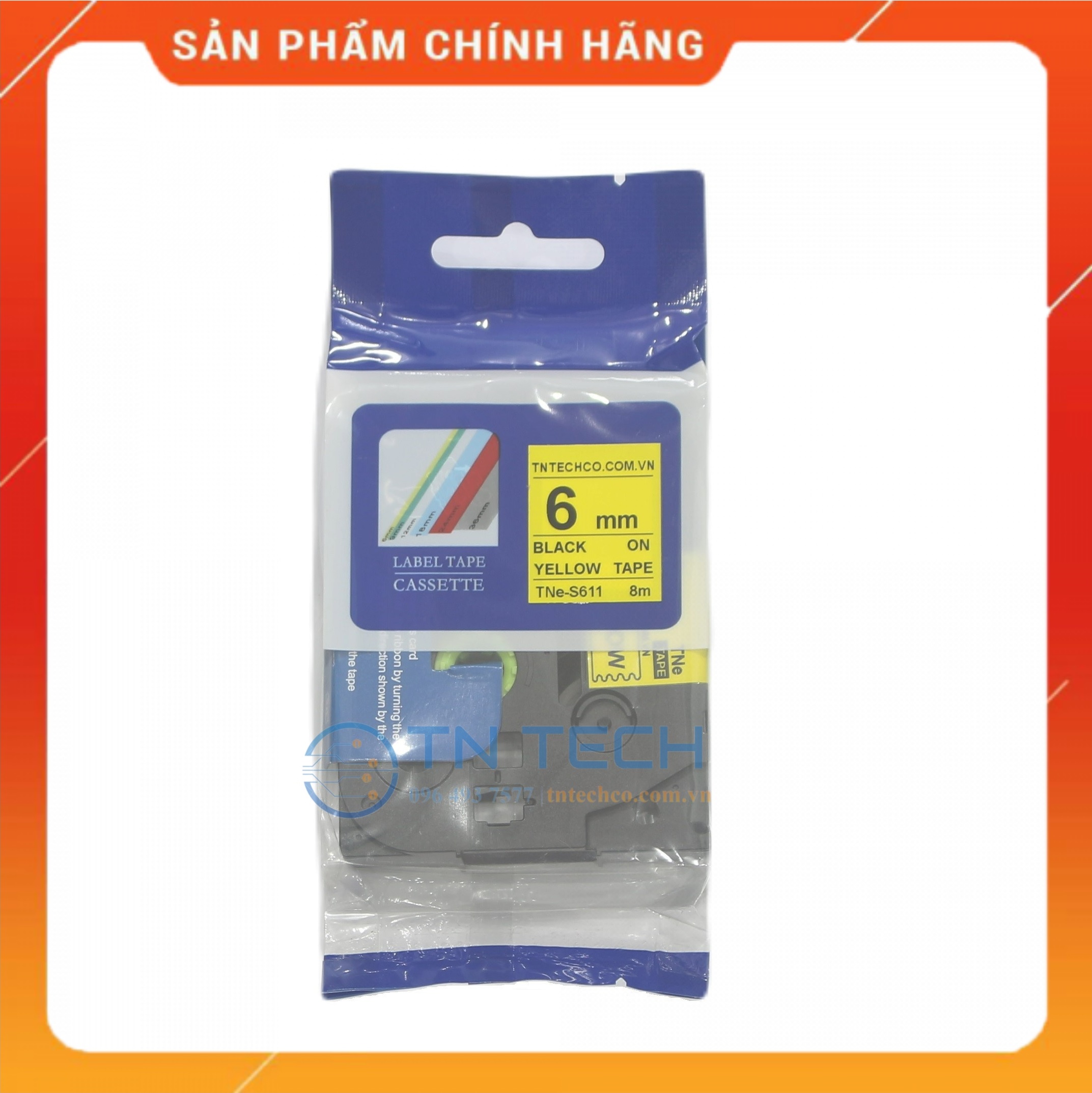 Nhãn in TNE-S611 Brother Nhãn in đa lớp sử dụng cho máy in nhãn Brother, tất cả trong 1, mực nằm bên trong, chống chịu dung môi, hóa chất, nước, dầu mỡ, nhiệt độ Mã