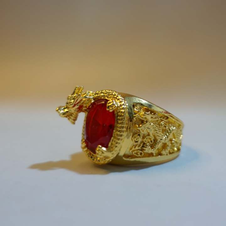 Chất liệu Thân Nhẫn: Hợp kim Titanium Chất liệu đá: Đá Zircon nhân tạo, kiểu dáng kim cương Thiết kế: Khắc rồng trên thân và mặt nhẫn, tinh xảo, chi tiết. Công dụng: Trang sức,