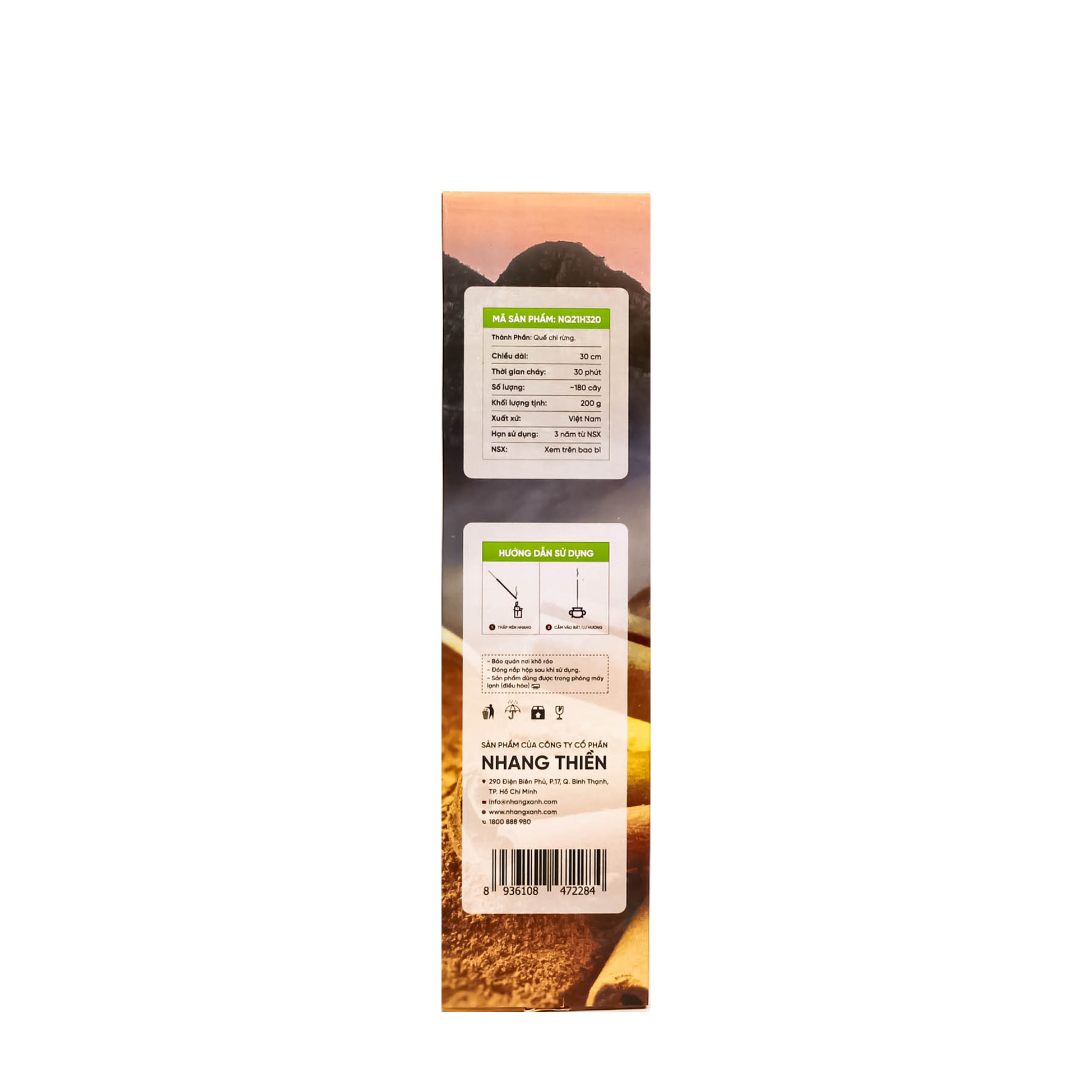KHÔNG HÓA CHẤT KHÔNG HƯƠNG LIỆU KHÔNG ĐỘC HẠI TRONG KHÓI HƯƠNG Với mục đích đem lại sức khỏe và an toàn cho người sử dụng khỏi các loại hương tẩm hóa chất độc hại, với 100% không sử dụng hóa chất 100% nguyên liệu từ thảo mộc đảm bảo sức khỏe người tiêu dùng. Đóng gói: 12 CÂY/HỘP Kích thước: CÂY DÀI 60CM - thời gian cháy: 12GIỜ CÂY DÀI 50CM - thời gian cháy: 8GIỜ Hương nhang càng để lâu càng thơm.