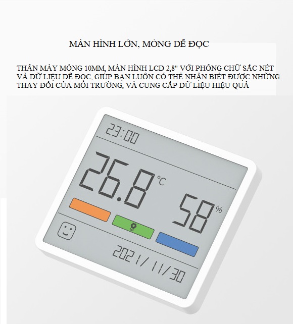 - Nhạy cảm, giám sát chính xác Tích hợp cảm biến độ nhạy cao, làm mới trong vài giây, thiết kế nạp khí ở mặt sau, cảm giác chính xác những thay đổi về nhiệt độ, độ ẩm