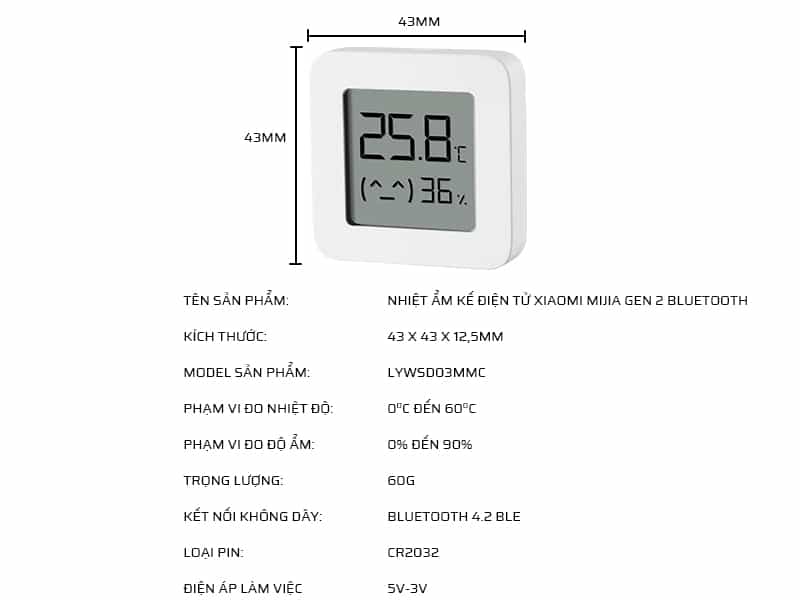 - Cảm biến nhiệt độ, độ ẩm với độ chính xác cao Sensirion được tích hợp trên Mijia gen 2. Từ đó giúp phát hiện nhanh chóng và chính xác những thay đổi, phản ánh sự thay đổi nhiệt độ ở độ chính xác 0.1 ºC và độ ẩm là 1% RH. Hơn nữa đồng hồ đo nhiệt độ, độ ẩm Mijia còn sử dụng màn hình tiêu thụ năng lượng thấp, viên pin nút có thể cung cấp năng lượng trong khoảng 1 năm.