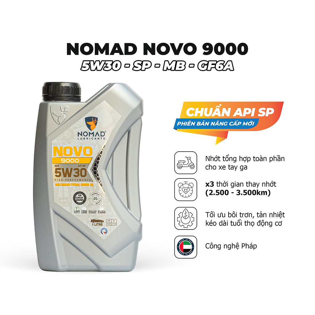 GIỚI THIỆU NHỚT XE TAY GA TỔNG HỢP TOÀN PHẦN NOMAD NOVO 9000, SAE 5W30, API SP, FULLY SYNTHETIC 100%