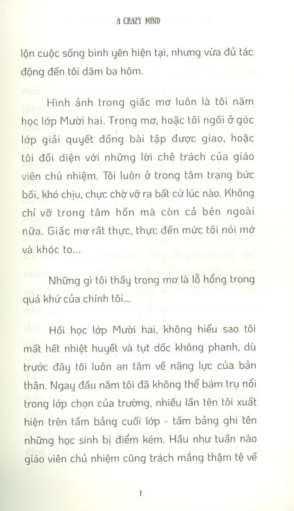 NHỮNG ĐÊM KHÔNG NGỦ NHỮNG NGÀY CHẬM TRÔI - A CRAZY MIND “Những đêm không ngủ, những ngày chậm trôi” đại diện cho một hành tinh mới - nơi nỗi đau tinh thần được đưa ra ánh sáng và chữa lành. Cuốn sách là tập hợp những câu chuyện có thật của những số phận khác nhau đang gặp phải các vấn đề về tâm lý: trầm cảm, rối loạn lo âu, rối loạn lưỡng cực… và những người đang học tập và làm việc trong ngành tâm lý học. “Nếu thế giới này còn thứ gì giữ bạn lại, là tình yêu thương hay sự quan tâm trong phút giây nào đó, mong bạn đừng gạt nó đi, bạn đừng bỏ qua sự cố gắng của bản thân dù nhỏ bé nhất!”- Khải Trạch. Hóa ra tận cùng nỗi đau và tận cùng sự chống chọi là một lòng tha thiết sống, lòng tha thiết bám rễ ở cuộc đời này như thế. “Những đêm không ngủ, những ngày chậm trôi” là một khoảng lặng giữa những nốt nhạc vội vã chạy nhảy giữa cuộc sống hiện đại, để những con người dù mang trong mình những tổn thương tâm lý hay không đều cùng ngồi lại bên nhau, soi tỏ tâm hồn nhau bằng ánh sáng của sự thấu cảm, trao gửi cho nhau thương yêu và kết nối để chữa lành. Thông qua cuốn sách, A Crazy Mind mong muốn đưa một góc nhìn mới đến độc giả về thế giới của những con người đang phải đấu tranh với những nỗi đau tinh thần cũng như những câu chuyện thực tế ít được đề cập của những người đang học tập và làm việc trong ngành tâm lý học. Đây không phải cuốn sách đọc để giải trí, mà là một bức tranh “cảm xúc” được ghép từ những câu chuyện đủ đầy các mảng sáng tối lẩn khuất thẳm sâu trong tâm hồn. Hy vọng đây là một món ăn tinh thần làm đầy thêm sự phong phú trong tâm hồn bạn.
