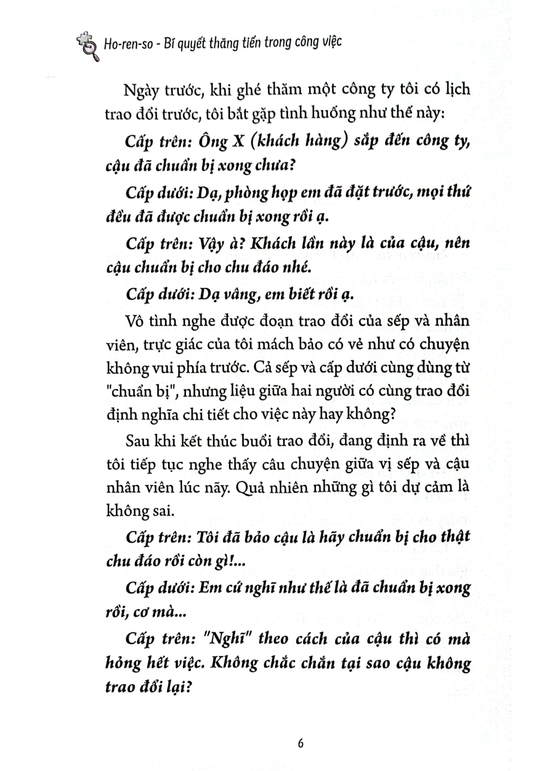 Cuốn sách này sẽ đặt trọng điểm vào kỹ năng cơ bản, thậm chí có khi bạn sẽ nghĩ là không cần thiết, đó chính là kỹ năng Horenso. Đối tượng phù hợp nhất với cuốn sách này là nhân viên trẻ đang phải đau đầu với những thắc mắc như không được đánh giá cao dù đang rất nỗ lực làm việc hết mình, hay công việc không tiến triển như mong muốn.