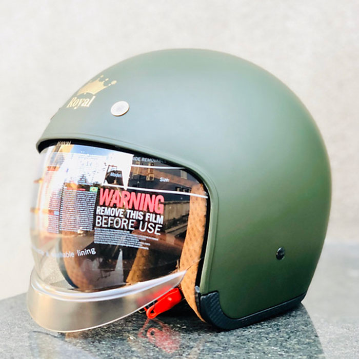 ✨Nón bảo hiểm 3/4 ROYAL M139 có kính âm màu XANH LÍNH NHÁM