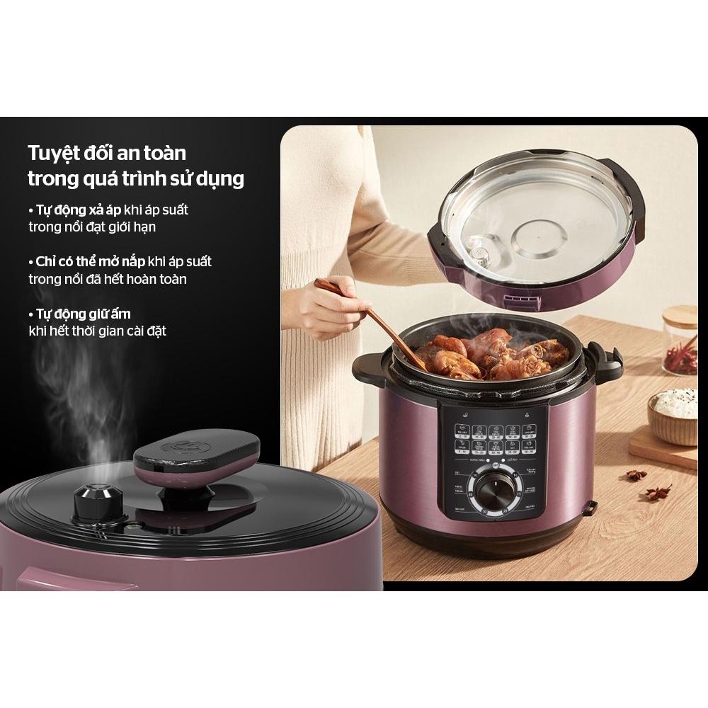 ĐẶC ĐIỂM NỔI BẬT Ninh kĩ hầm nhừ, giữ trọn vị ngon Thiết kế nắp 2 in 1, dễ dàng tháo rời vệ sinh Xả áp bằng nút ấn chống bỏng, an toàn sử dụng Đa chức năng: nấu cơm, hầm xương, ...