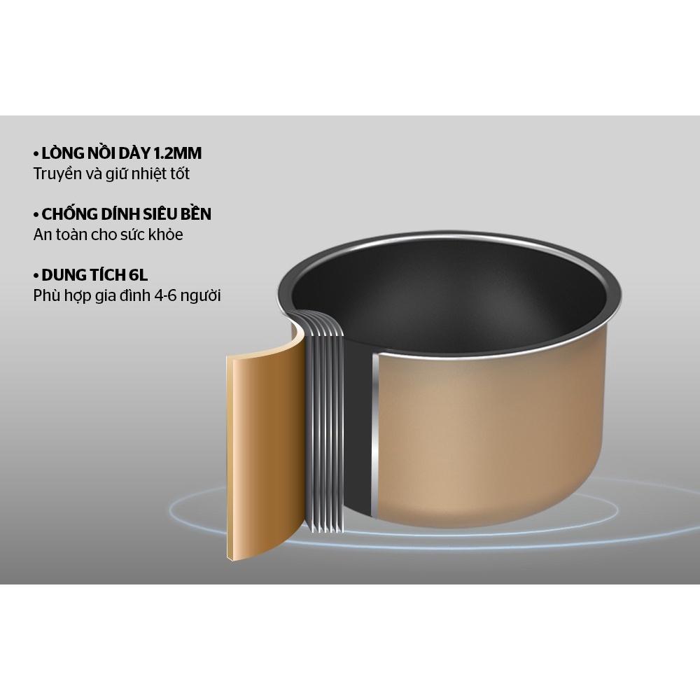 Dung tích 6L có thể phục vụ nhu cầu của gia đình 4 – 6 thành viên.