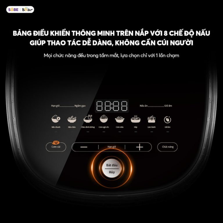 • 8 chế độ nấu tiện lợi. Nồi cơm được trang bị màn hình cảm ứng thông minh với 8 chế độ nấu, giúp bạn dễ dàng lựa chọn chương trình phù hợp chỉ bằng một chạm, không cần cúi người thao tác. Các chế độ đa dạng như nấu nhanh 22 phút, nấu cơm dẻo thơm, hầm súp 2 giờ, hấp bánh, giữ ấm… đáp ứng mọi nhu cầu nấu ăn. Hệ thống điều chỉnh thời gian và nhiệt độ thông minh giúp cơm chín đều, giữ trọn vị ngon. Với thiết kế tối ưu, Bear 4L không chỉ giúp nấu cơm ngon mà còn hỗ trợ chế biến nhiều món ăn khác, mang đến trải nghiệm nấu nướng tiện lợi, hiện đại, phù hợp với mọi gia đình.
