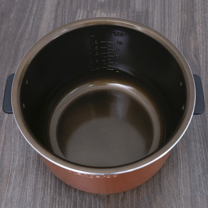 Chất liệu cao cấp Lòng nồi được làm từ hợp kim nhôm cao cấp, thu nhiệt tốt, truyền nhiệt nhanh, ít hao tốn điện khi nấu. Bên ngoài được tráng 2 lớp chống dính Teflon, hạn chế cơm bám dính vào lòng nồi, đồng thời giúp chị em nội trợ dễ dàng vệ sinh sau khi sử dụng. An toàn khi nấu, cho hạt cơm chín ngon tơi, dễ vệ sinh sau khi dùng. Lòng nồi có tay cầm cách nhiệt giúp bạn di chuyển, đặt/nhấc lòng nồi vào/ra khỏi thân nồi nhanh gọn, không sợ nóng tay.