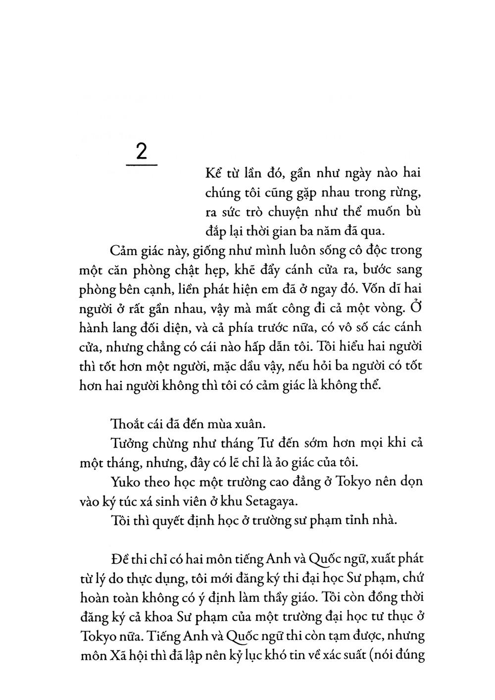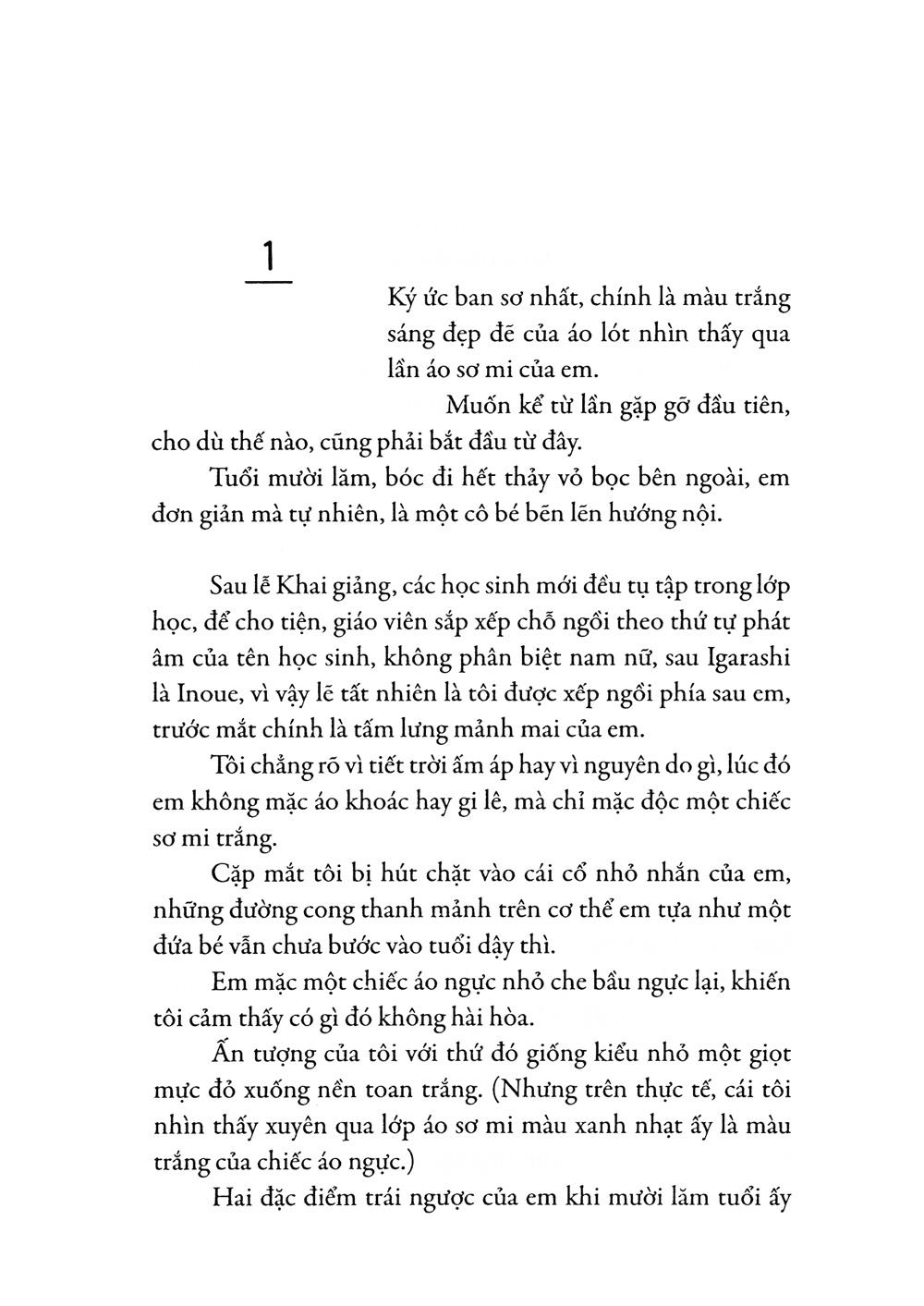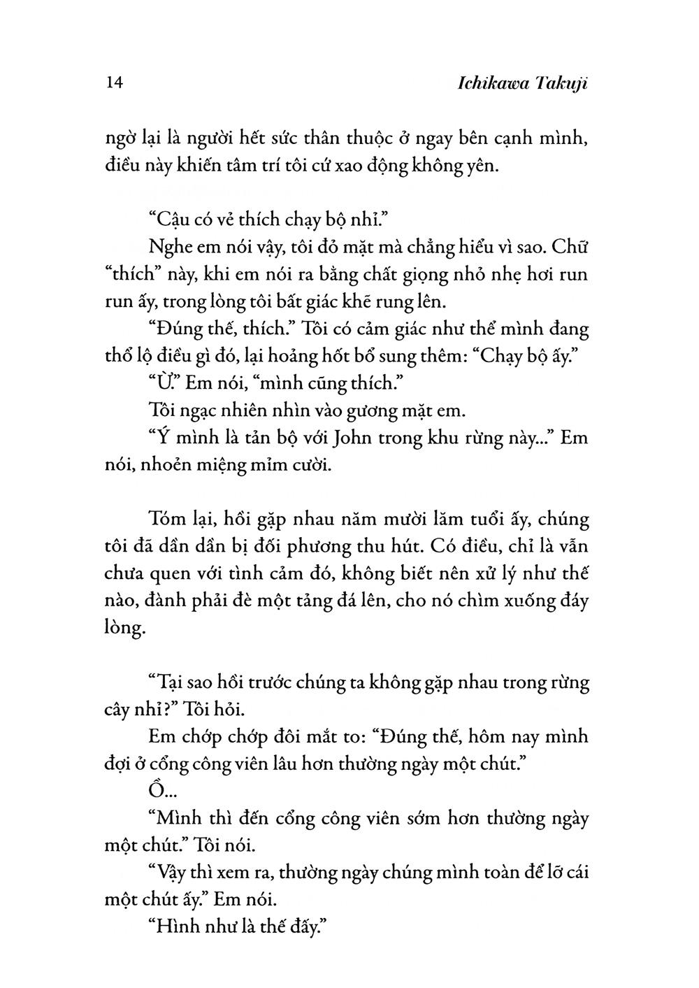 Vẫn giọng văn nhẹ nhàng pha chút hài hước, như thể một cậu bé mới lớn đang thủ thỉ kể chuyện, Tchikawa Takuji một lần nữa khắc họa bức tranh tình yêu và chia ly bằng gam mầu sáng trong. Mỗi tác phẩm của ông là một lần thanh lọc tâm hồn người đọc.