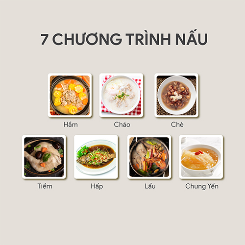 Đa chức năng : chưng yến, nấu lẩu, nấu cháo, hầm, hấp, chè, tiềm