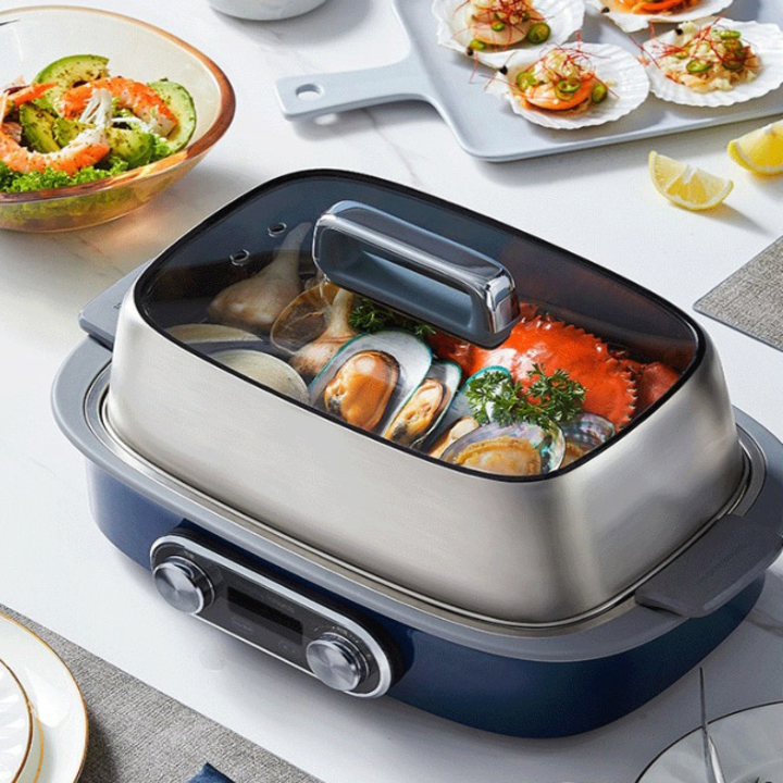 Vừa là nồi lẩu điện 2 ngăn vừa là nồi hấp- hãng tặng kèm muôi ăn lẩu kèm giỏ nhúng chính hãng chất lượng cao Sự kết hợp hoàn hảo giữa lẩu truyền thống và