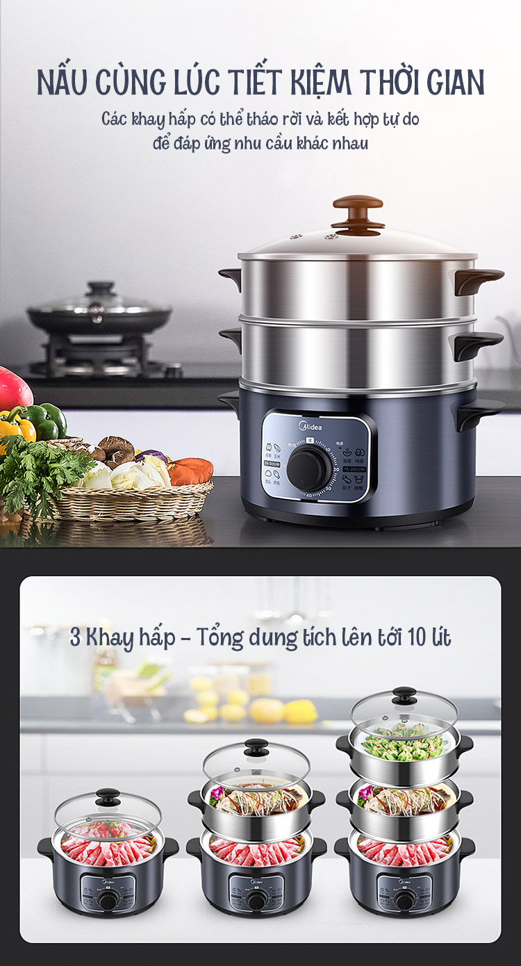 TÍNH NĂNG CỦA NỒI HẤP ĐIỆN 3 TẦNG MIDEA MZ-ZG26 EASY401