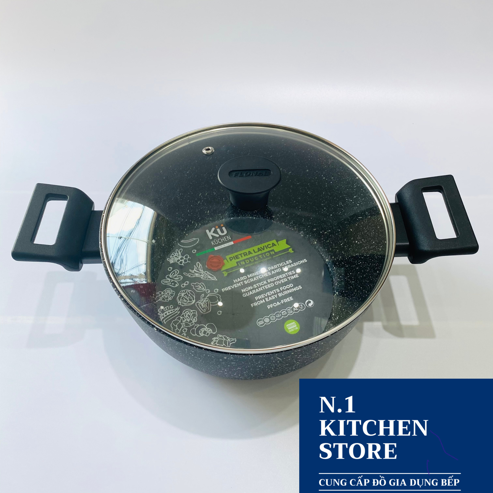 Khả năng chống dính vượt trội, và dễ vệ sinh, dùng được cho máy rửa bát.Bên ngoài là lớp phủ đá Magma-Tech…, cung cấp hiệu suất chống dính cao và độ bền bỉ cho sản phẩm, đồng thời giúp giữ nhiệt tốt, cho thức ăn trong nồi nóng lâu hơn.Vung nồi được làm bằng thủy tinh chịu nhiệt, trong suốt, giúp thấy được thực phẩm bên trong mà không cần mở vung.Tay cầm và núm nắp vung bằng nhựa bền đẹp, chống bỏng, nóng.Chất liệu sản phẩm thân thiện với môi trường, không chứa chất độc hại, đảm bảo an toàn khi tiếp xúc với thực phẩm và an toàn cho sức khỏe người sử dụng theo tiêu chuẩn châu Âu. Bên cạnh đó, màu sắc sang trọng cùng kiểu dáng trang nhã sẽ giúp căn bếp nhà bạn thêm hiện đại và ấn tượng.