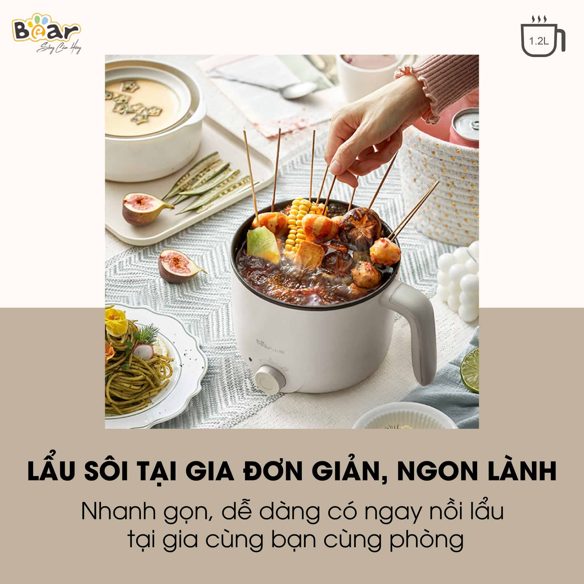 Nếu bạn đang cần tìm 1 chiếc nồi cho cuộc sống độc thân, hay dễ dàng mang đi du lịch khắp mọi nơi, thì nồi lẩu mini đa năng Bear DRG-C12K1 chính là sự lựa chọn cho bạn. Với thiết kế nhỏ gọn, dung tích 1.2L giúp bạn tiết kiệm diện tích bếp, có thể mang tới văn phòng hoặc đi cắm trại dễ dàng mà vẫn mang đến cho bạn những bữa ăn ngon.