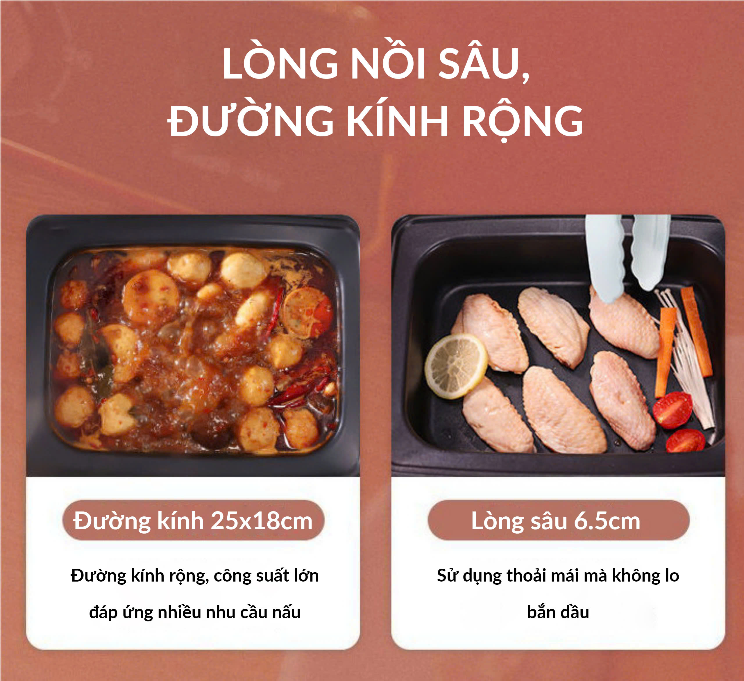 - Ngoài ra, khay riêng tách rời có thể nấu lẩu, áp chảo tiệc sum họp bao sang trọng tiện lợi