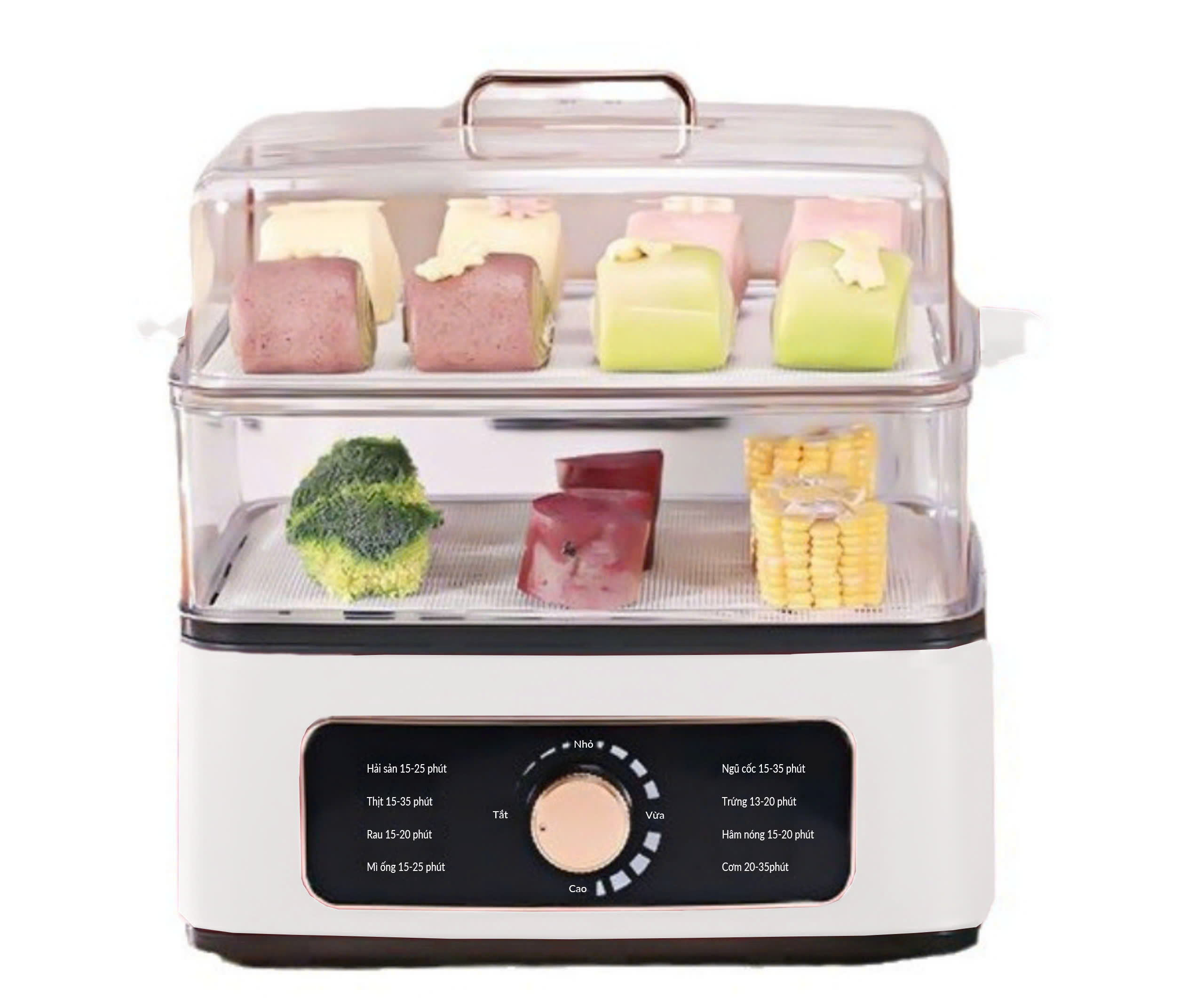 Nồi Hấp Điện Thông Minh 3 Tầng Dung Tích 22L - Đa Chức Năng Siêu Tiện Dụng - Nồi hấp điện thông minh 3 tầng được làm từ chất liệu nhựa PP cấp thực phẩm