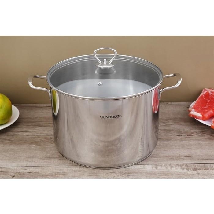 Nồi lẩu inox 1 đáy SUNHOUSE SH28LG có vung kính cường lực, dày 4mm, trong suốt, giúp bạn dễ dàng quan sát thực phẩm bên trong nồi.