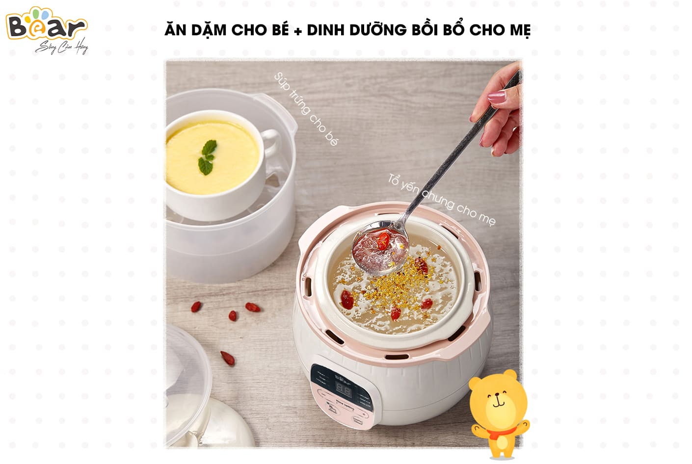 Review Nồi nấu chậm 0.8L Bear nấu cháo cho bé