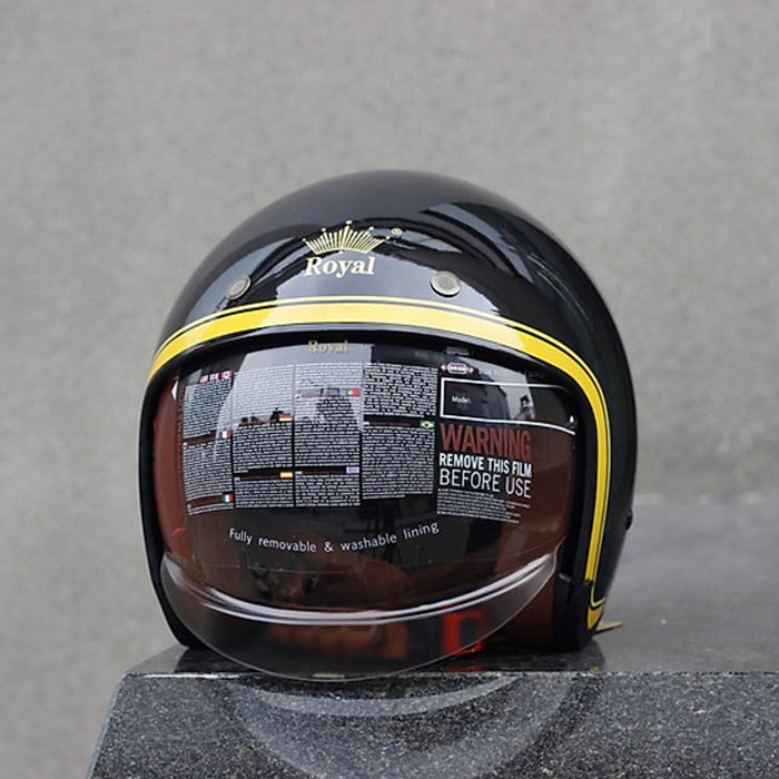 - Phong cách thiết kế: mũ kiểu 3/4 kèm kính dài, mũ được thiết kế dáng tròn, đi kèm 2 miếng ốp má, giúp tăng thêm hiệu quả bao phủ, bảo vệ khuôn mặt. -