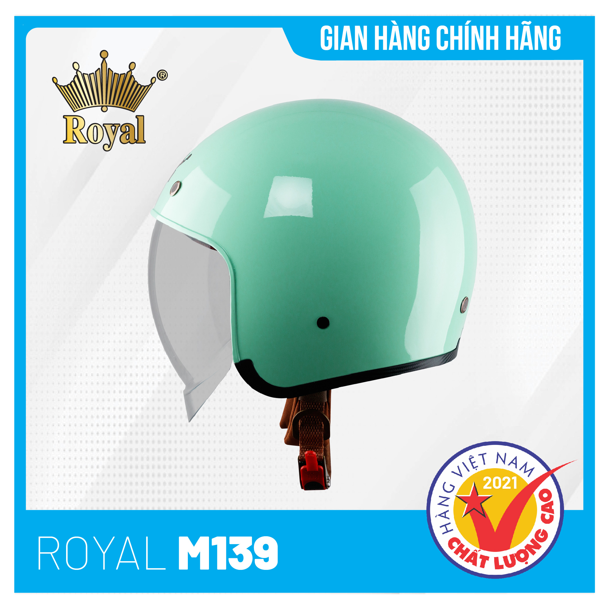 ✨Nón bảo hiểm Royal M139 Kính Âm Trơn Sành Điệu, Trẻ Trung, Thời Thượng - Xanh Ngọc Bóng - Size L