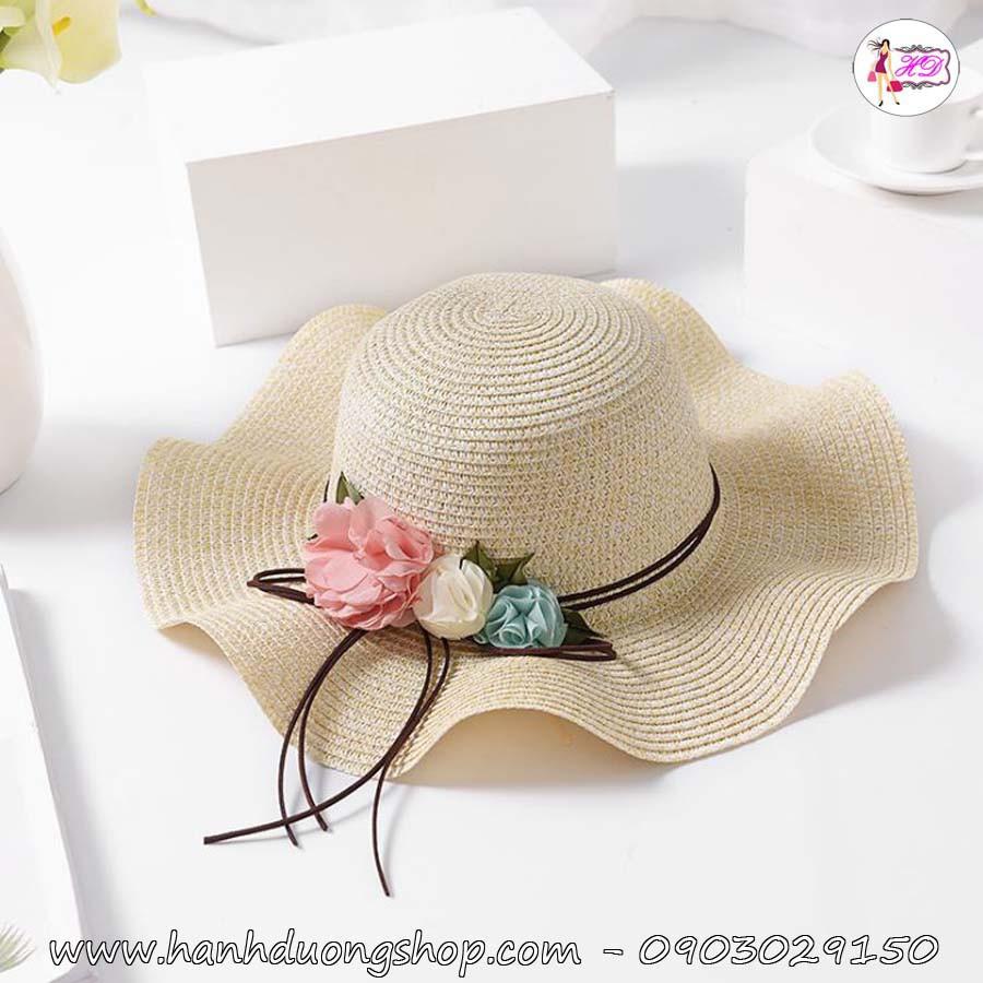 ✨Nón cói bãi biển vành gợn sóng nơ 3 hoa HQC4114