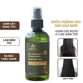 Nước dưỡng tóc tinh dầu bưởi (pomelo hair tonic) Tabaha 120ml Thành phần chính: - Tinh dầu vỏ bưởi: Do có tính kháng khuẩn và chống oxy hóa cao, tinh dầu vỏ bưởi giúp ngăn