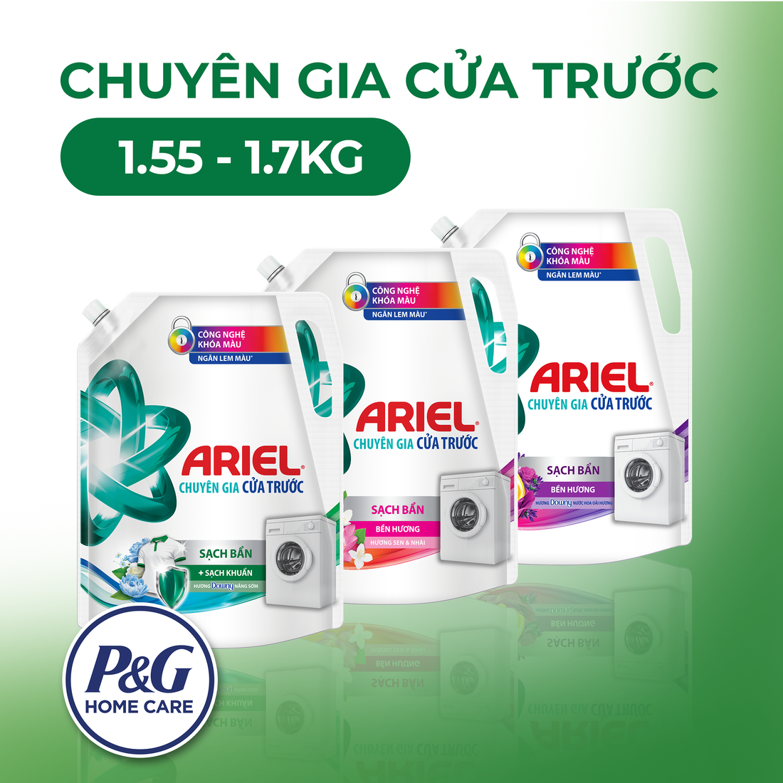- Nước giặt ARIEL CHUYÊN GIA CỬA TRƯỚC với công thức và bao bì hoàn toàn mới, được khuyên dùng bởi nhà sản xuất máy giặt #1 tại Việt Nam.