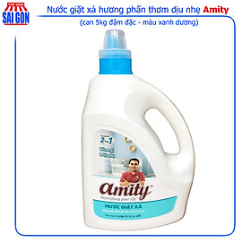 Nước Giặt Xả Amity hương phấm thơm dịu nhẹ (xanh dương) can 5kg giúp giữ mùi thơm nhẹ nhàng suốt cả ngày, một thương hiệu của MC Quyền Linh Với công nghệ tích hợp 2