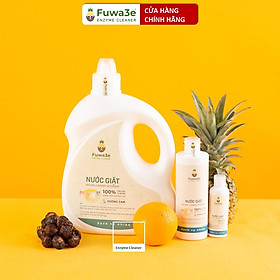 Mua tại TiktokNước giặt hữu cơ Fuwa3e ứng dụng công nghệ lên men vỏ dứa với Enzyme Bromelain có trong dứa có hoạt tính làm tan và tẩy sạch các vết bẩn. Sản phẩm không chứa hoá chất độc hại, chất tẩy trắng và hương liệu nên phù hợp giặt đồ cho trẻ sơ sinh, đồ lót, khăn. Sản phẩn đạt chuẩn không kích ứng da được kiểm định bởi Quatest 2. Một đặc điểm nổi bật của sản phẩm là nước thải sau khi giặt có thể dùng trực tiếp để tưới cây, các enzyme trong nước thải sẽ làm sạch đất và cung cấp thêm lợi khuẩn cho cây trồng. Ưu điểm vượt trội