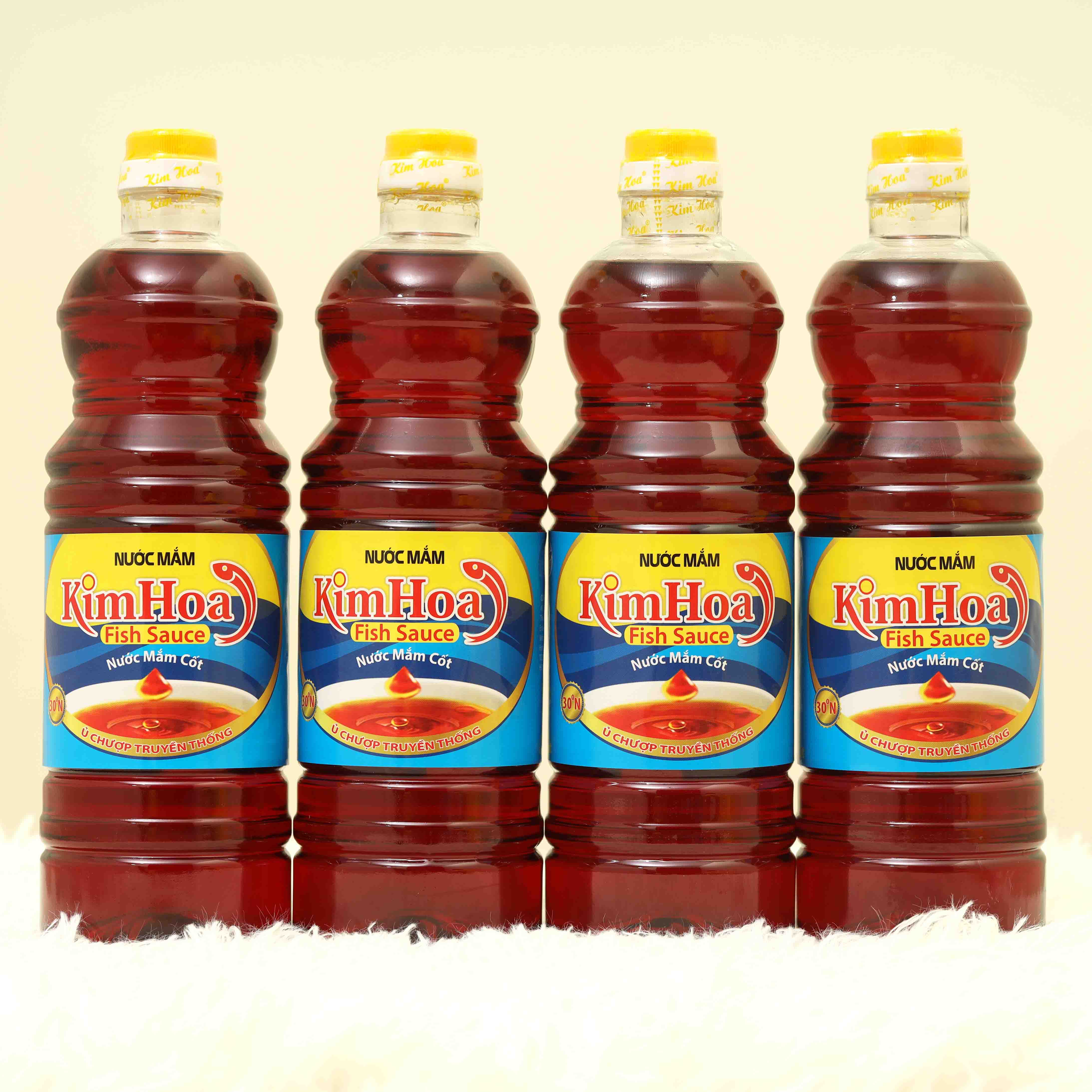 Khác với các loại nước mắm pha chế công nghiệp có sử dụng nhiều chất điều vị và phẩm màu, Nước Mắm Kim Hoa được làm 100% từ Cá Cơm tại vùng đảo Phú Quốc - là loại cá cơm giàu đạm, tươi ngon. Cá cơm sau khi được đánh bắt lên sẽ được ướp ngay trên tàu theo tỷ lệ 3 cá 1 muối, khi thuyền cập bến cá được đưa lên thùng, kiểm tra độ mặn và tiến hành gài nén - ủ chượp trong thùng gỗ đặc trưng. Quá trình này bắt buộc phải từ 12 tháng trở lên, để cá được thuỷ phân hoàn toàn, khi đó nước mắm được kéo rút ra sẽ có màu cánh gián đặc trưng, hương vị đậm đà và cái hậu ngọt của đạm cá được lắng đọng và cảm nhận rõ nơi cuống họng. Chính vì thế, nhiều khách hàng trước có thói quen sử dụng nước mắm công nghiệp khi nếm nước mắm Kim Hoa lần đầu sẽ cảm thấy mặn.