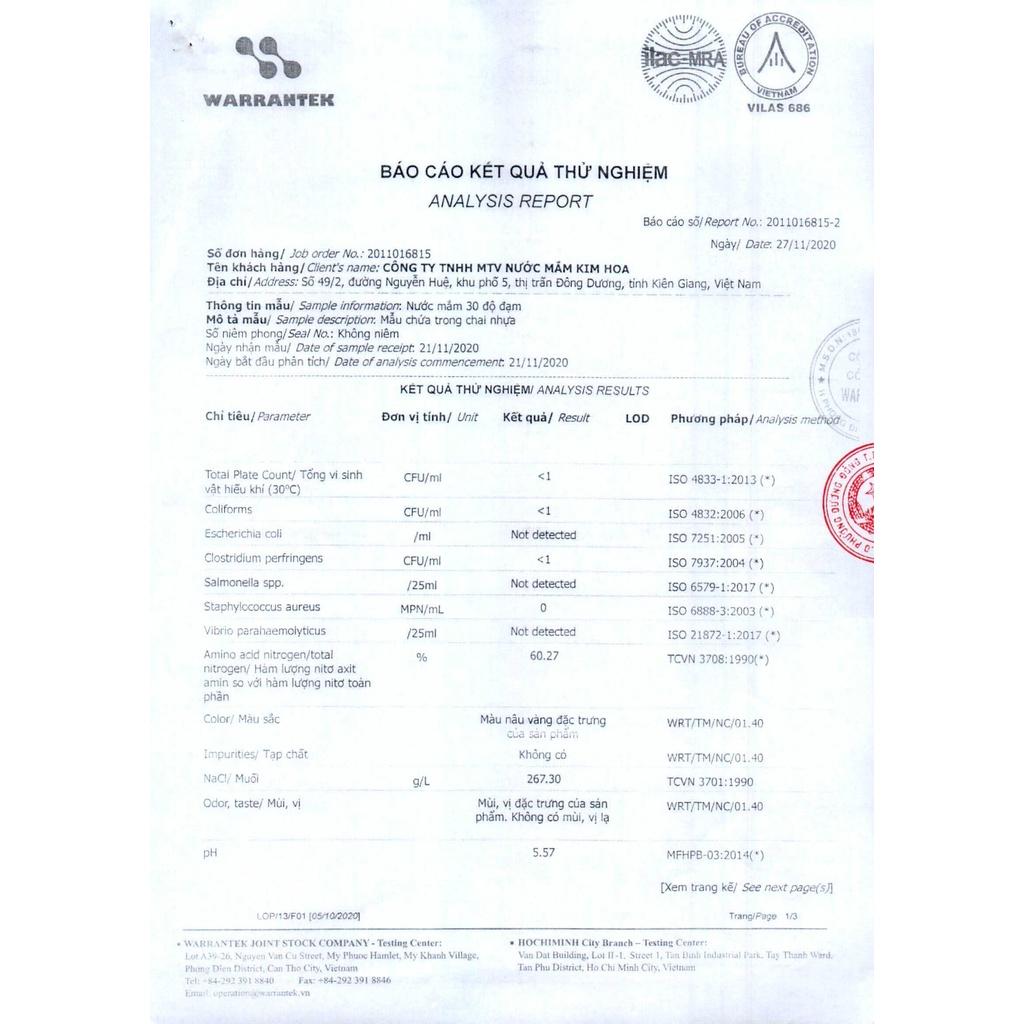 Nước Mắm Cá Đen Phan Thiết đạt chứng nhận tiêu chuẩn HACCP ( tiêu chuẩn VSATTP Châu Âu), OCOP 4 SAO (hạng mục tỉnh Bình Thuận), có giấy phép kiểm định của viện Pasteur HCM