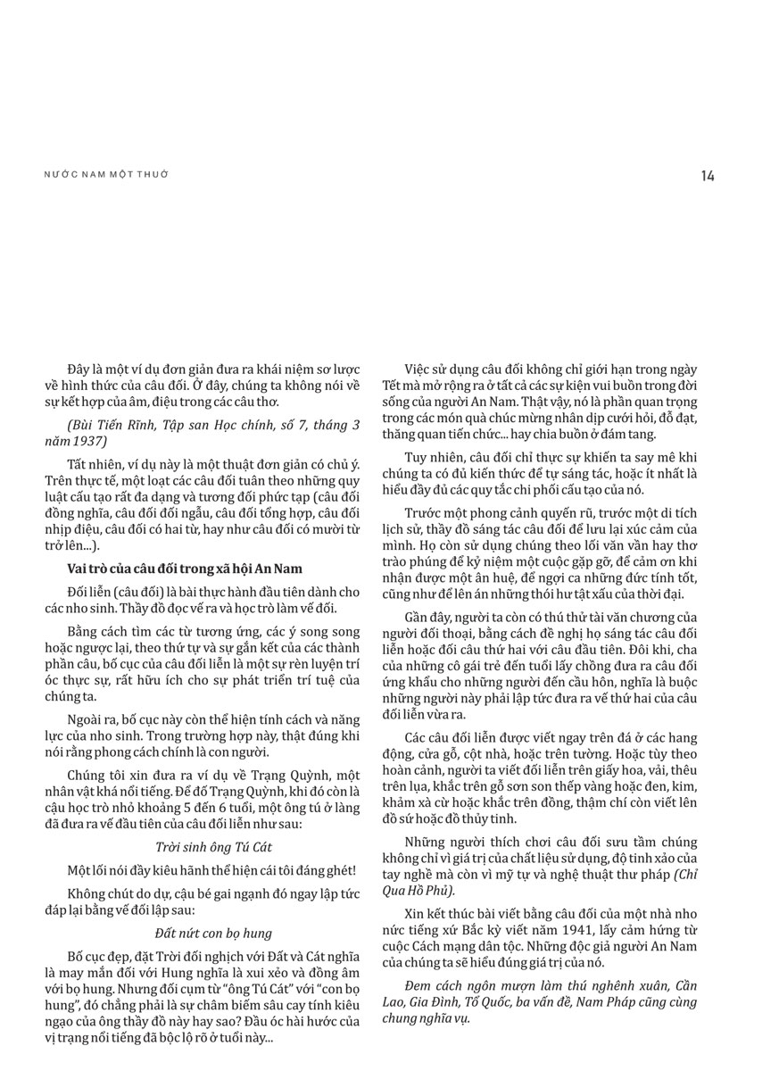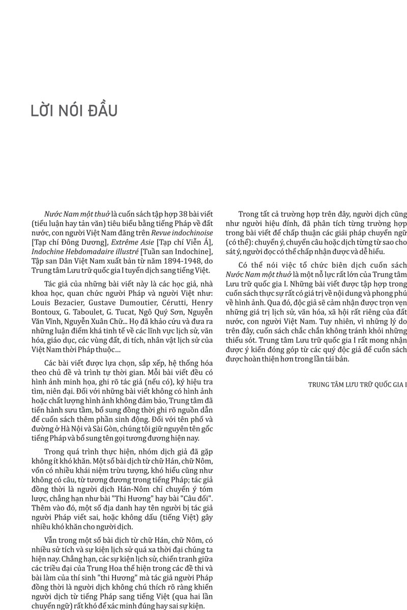 Mua tại TiktokNước Nam Một Thuở (Bìa Cứng) “Một trong những cuốn sách truyền tải trọn vẹn nhất giá trị lịch sử – văn hóa đặc trưng của đất Việt, người Việt.” “Có một thực tế đang diễn ra trong đời sống văn hóa đọc, trong xu thế nhận thức về quá khứ là xuất hiện trào lưu khơi dòng và chuyển ngữ khối tài liệu tiếng Pháp “thời thuộc địa” và xuất bản cho độc giả Việt.” – Sử gia Dương Trung Quốc Nước Nam một thuở là cuốn sách tập hợp 38 công trình nghiên cứu, bài viết tiêu biểu bằng tiếng Pháp và 60 tranh ảnh phong phú về đất nước, con người An Nam đăng trên các Tạp chí Đông Dương, Tạp chí Viễn Á, Tuần san Đông Dương, Tập san Dân Việt Nam xuất bản từ năm 1894-1948, do Trung tâm Lưu trữ quốc gia I tuyển dịch sang tiếng Việt. Ấn phẩm chủ yếu khai thác các bài tiểu luận có chất lượng ẩn trong các hồ sơ lưu trữ, trong đó có các ấn phẩm định kỳ phát hành từ năm 1948 trở về trước… Tác giả của những công trình này là các học giả, nhà khoa học, quan chức người Pháp và người Việt như: Louis Bezacier, Gustave Dumoutier, Pierre Pasquier, Cerutti, Henry Bontoux, Paul Boudet, G. Tucat, Ngô Quý Sơn, Nguyễn Văn Vĩnh, Nguyễn Xuân Chữ… Họ đã nghiên cứu kỹ lưỡng về nhiều lĩnh vực của đời sống: văn hóa, giáo dục, du lịch, quân sự, y tế, ngành nghề truyền thống… Các bài viết được lựa chọn và sắp xếp, hệ thống hóa theo chủ đề và trình tự thời gian. Mỗi bài viết đều có hình ảnh minh họa, ghi rõ tác giả, ký hiệu tra tìm, niên đại. Đối với những bài viết không có hình ảnh, Ban Biên soạn đã sưu tầm, bổ sung hình ảnh đồng thời ghi rõ nguồn dẫn để cuốn sách thêm phần sinh động. Đối với tên phố và đường ở Hà Nội và Sài Gòn, chúng tôi giữ nguyên tên gốc tiếng Pháp và bổ sung tên gọi tương đương hiện nay. Trong quá trình thực hiện, nhóm biên dịch đã gặp không ít khó khăn. Một số bài dịch từ chữ Hán, chữ Nôm, vốn có nhiều khái niệm trừu tượng, khó hiểu cũng như không có câu, từ tương đương trong tiếng Pháp; tác giả đồng thời là người dịch Hán-Nôm chỉ chuyển ý tóm lược, chẳng hạn như bài “Thi Hương” hay bài “Câu đối”. Thêm vào đó, một số địa danh hay tên người bị tác giả người Pháp viết sai, hoặc không dấu (tiếng Việt) gây nhiều khó khăn cho người dịch. Vẫn trong một số bài dịch từ chữ Hán, chữ Nôm, có nhiều sử tích và sự kiện lịch sử quá xa thời đại chúng ta hiện nay. Chẳng hạn, các sự kiện lịch sử, chiến tranh giữa các triều đại của Trung Hoa thể hiện trong các đề thi và bài làm của thí sinh “thi Hương” mà tác giả người Pháp đồng thời là người dịch không chú thích rõ ràng khiến người dịch từ tiếng Pháp sang tiếng Việt (qua hai lần chuyển ngữ) rất khó để xác minh đúng hay sai sự kiện. Trong tất cả các trường hợp trên đây, người dịch cũng như người hiệu đính, biên tập đã phân tích từng trường hợp trong bài viết để chấp thuận các giải pháp chuyển ngữ (có thể): chuyển ý, chuyển câu hoặc dịch từng từ sao cho sát ý, người đọc có thể chấp nhận được và dễ hiểu. Nước Nam một thuở thuộc Tủ sách Lịch sử-Văn hóa, nằm trong dự án hợp tác giữa Omega Plus và Trung tâm Lưu trữ Quốc gia 1.