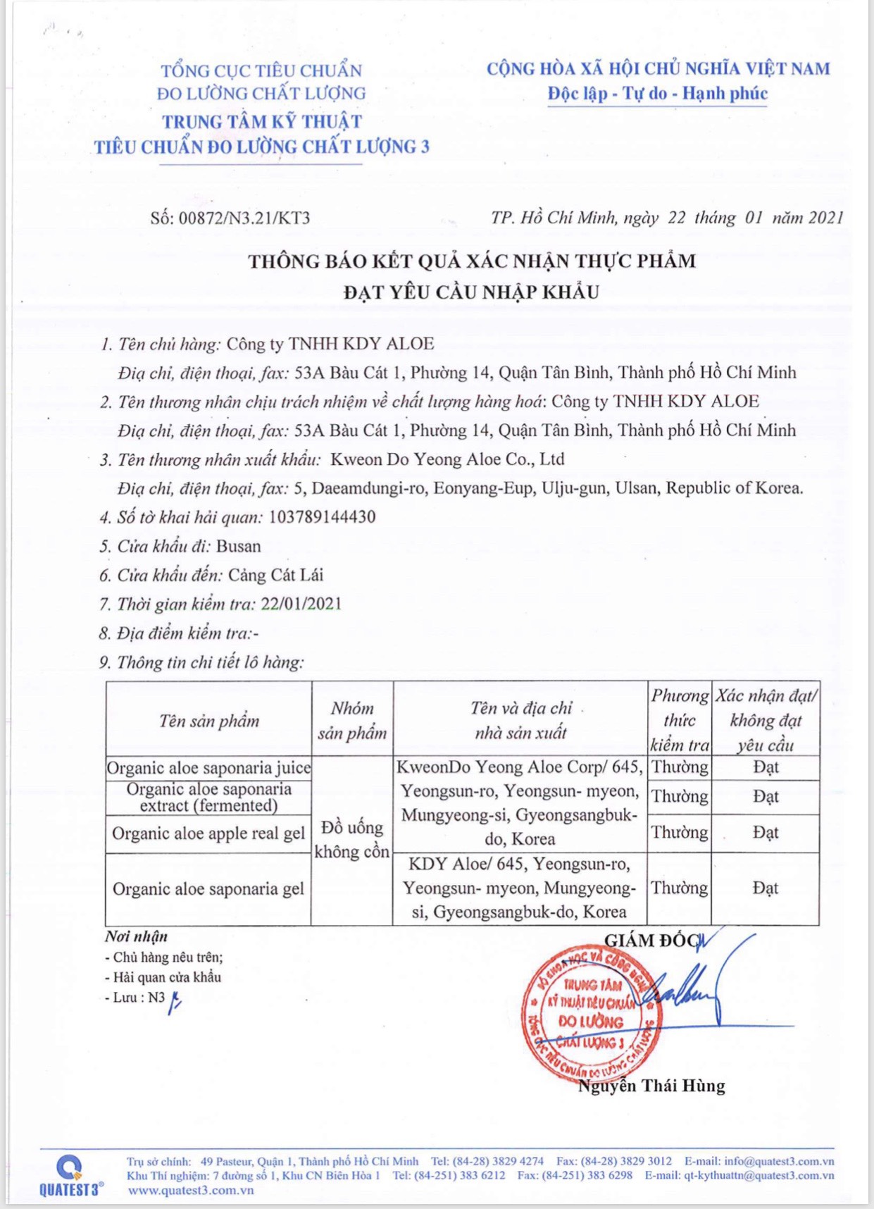 • Thông tin nhà phân phối : Nhập khẩu và phân phối chính hãng bởi CÔNG TY TNHH KDY ALOE Địa chỉ:71/32 Cộng Hòa, Phường 4, Quận Tân Bình, Thành phố Hồ Chí Minh, Việt Nam