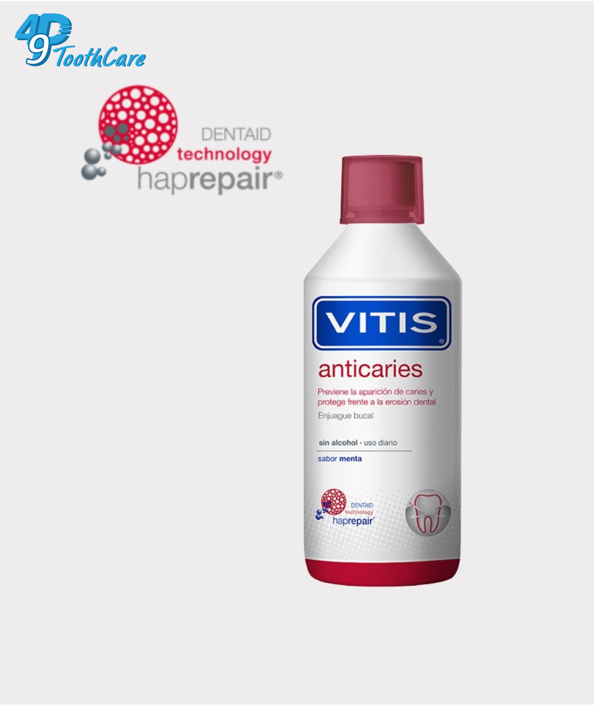 - Dùng thuốc giảm tiết nước bọt. Nước súc miệng VITIS anticaries với công thức đặc biệt giúp ngăn ngừa sâu răng từ sớm ở 3 mức độ khác nhau. Khả năng ngừa sâu răng vượt trội không chỉ củng cố và tái cấu trúc men răng, tạo lớp bảo vệ ngăn ngừa sâu răng vượt trội, mà còn có thể sửa chữa các vết nứt, rãnh và các khiếm khuyết ở men răng. Nước súc miệng VITIS anticaries cũng giúp tăng cường hiệu quả của kem đánh răng nhờ dễ dàng tiếp cận những khu vực khó tiếp cận trong khoang miệng và giữ các thành phần hoạt tính trong miệng trong thời gian dài hơn. Nước súc miệng VITIS anticaries với thành phần không cồn tránh tình trạng kích thích và bảo vệ nướu.