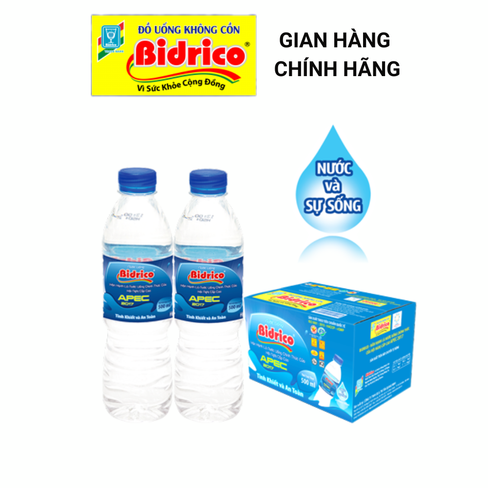 Mua tại TiktokNước Uống Bidrico ( Thùng 24 chai 500ml ) Tinh khiết và an toàn Nước uống Bidrico chai 500ml hân hạnh là nước uống chính thức tại hội nghị cấp cao APEC 2017. Thông tin sản phẩm nước uống Bidrico chai 500ml