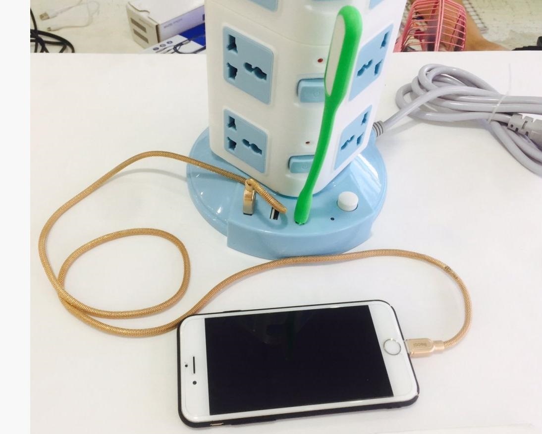 - Ổ cắm điện 3 tầng có công tắc và có đèn led báo hiệu riêng cho từng tầng, . Có 12 lỗ cắm điện nhà và 3 cổng sạc USB 5V dùng sạc điện thoại, máy tính bảng,...