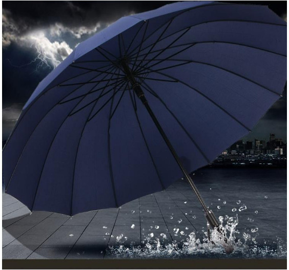 Ô dù cán dài 24 nan cỡ lớn siêu chắc chắn chống lật vải chống uv màu xanh đen