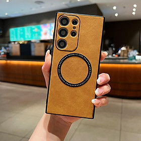- Ốp lưng da có vòng magsafe hỗ trợ sạc không dây tiện lợi cho máy Samsung S25 Ultra / S24 Ultra/ S24 Plus / S23 Ultra / S22 Ultra - Mặt lưng da lộn